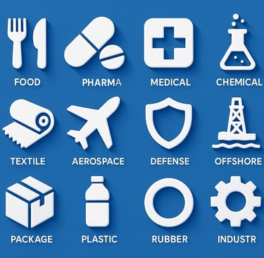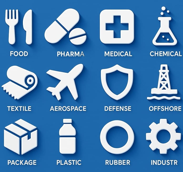 We serve various industries including food, pharma, chemicals, marine, textiles, automotive, aerospace, and manufacturing with specialized coating solutions.